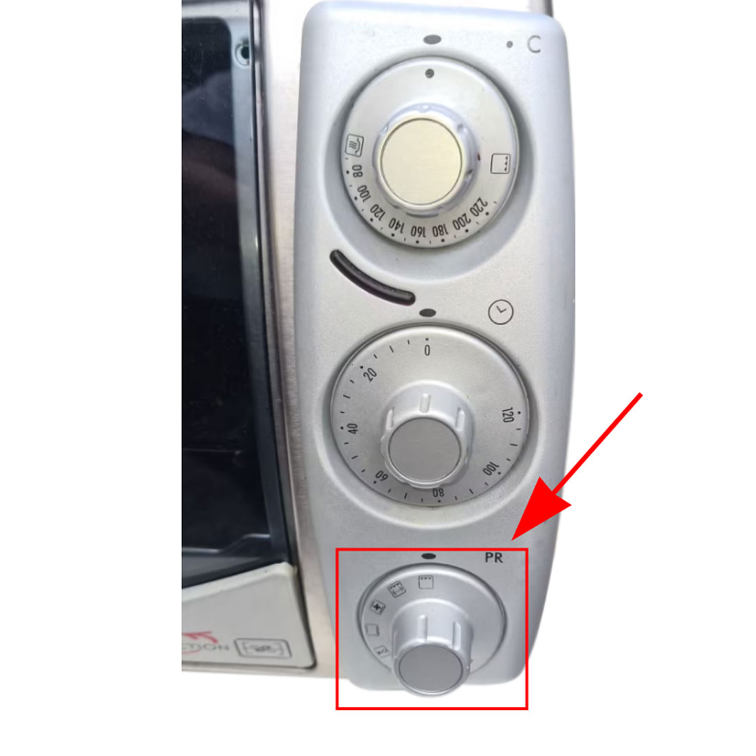 Ручка регулировки режимов работы электропечи DeLonghi.