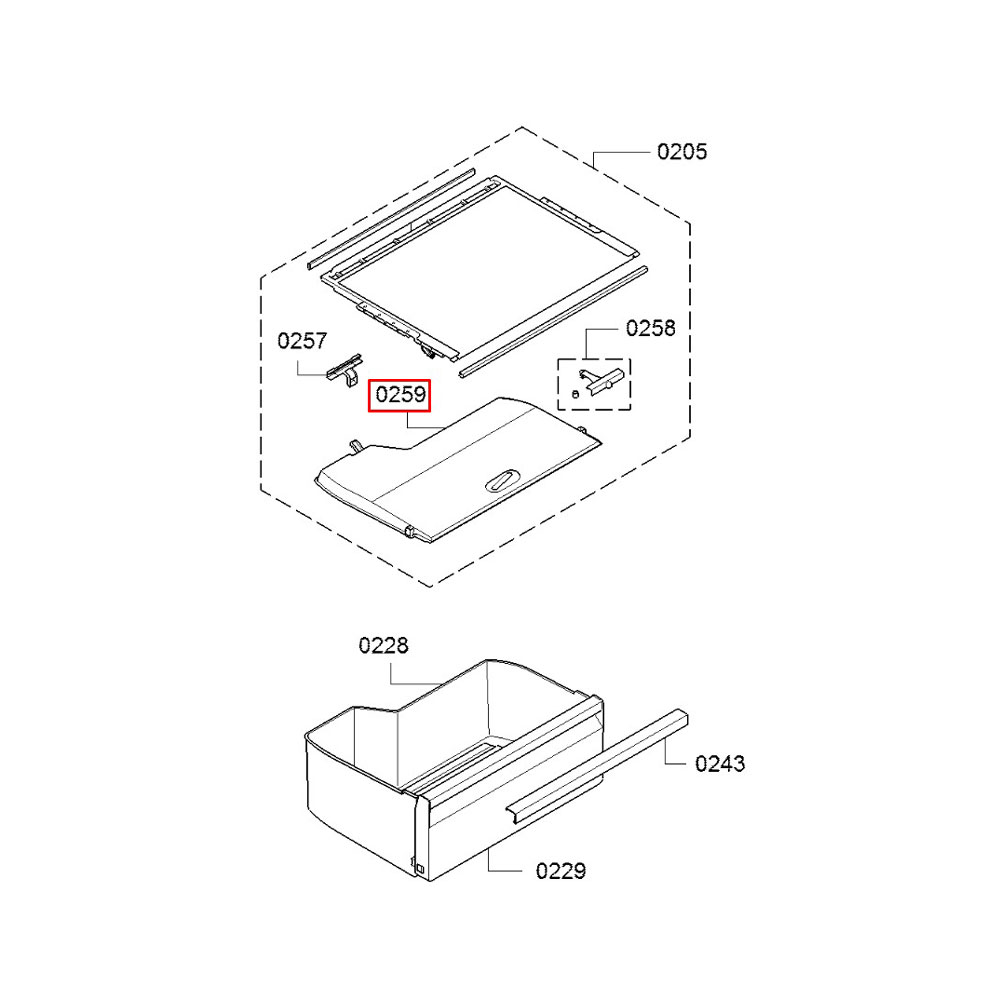 Верхняя крышка ящика холодильника Bosch.