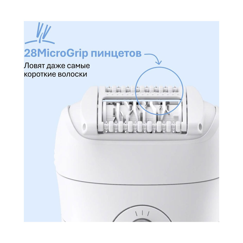 Технология MicroGrip с 28 точными прочными пинцетами, удаляющими самые короткие волоски, которые не способен удалить даже воск (до 0,5 мм), и не цепляющими кожу.